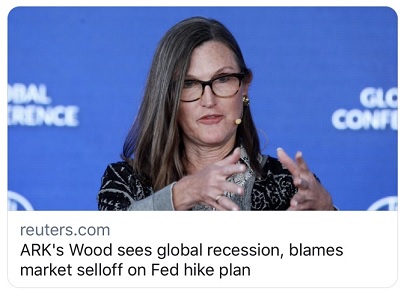 近期市场大跌要怪美联储!“女股神“伍德:很多迹象表明我们正处于熊市