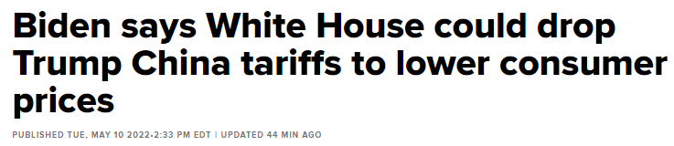 周二,美国总统拜登表示,他可能会取消对中国进口商品征收的部分关税,以帮助控制美国不断上涨的物价。