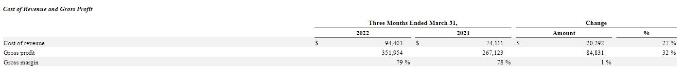从毛利率水平来看,2022Q1的毛利率79%,2021年同期为78%。