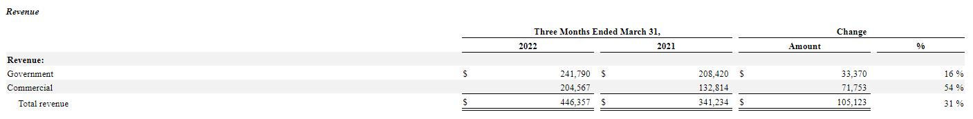从收入明细来看,Palantir第一季度政府业务收入2.41亿美元,政府业务营收同比增长16%;商业业务营收2.04亿美元,同比增长54%,其中美国商业营收同比增长136%,客户数量同比增长86%。