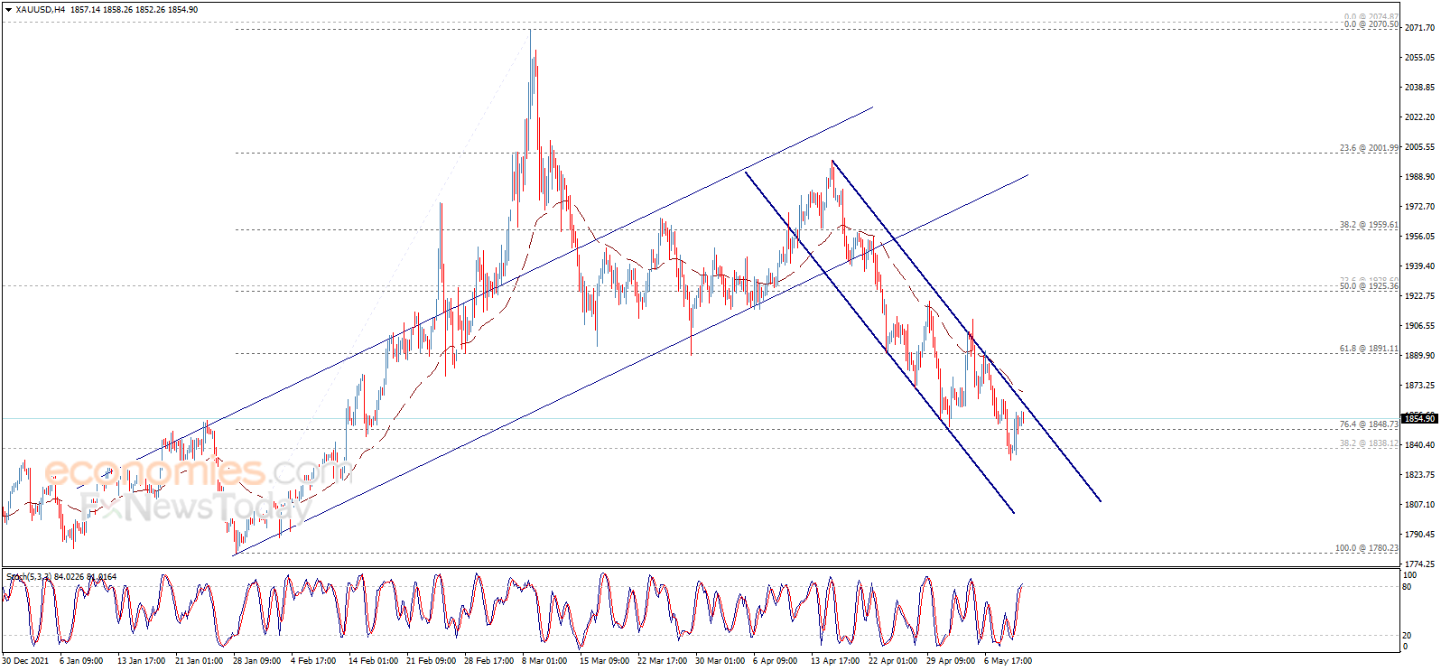 (现货黄金4小时图 来源:Economies.com)