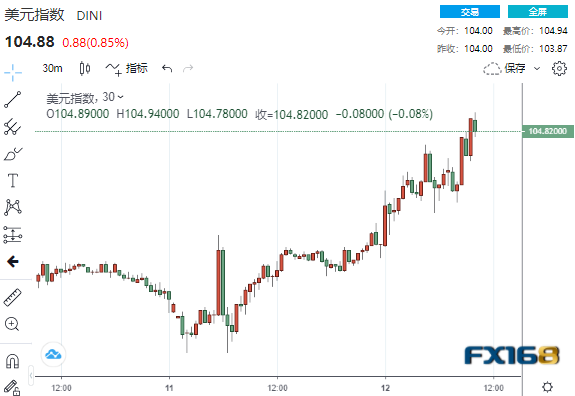 (美指30分钟走势图,来源:FX168)