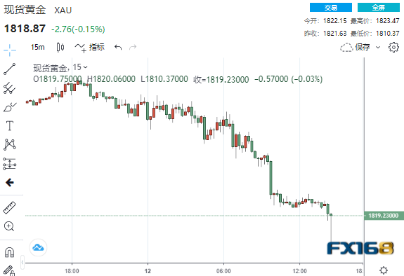 24K99讯 周五(5月13日)亚市早盘,现货黄金15分钟下挫10美元,逼近1810美元/盎司。
