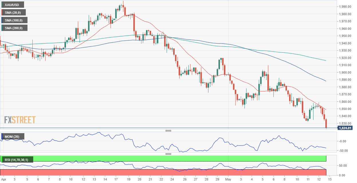 24K99讯 周五(5月13日)亚市早盘,现货黄金承压于1822美元/盎司附近,昨日金价大跌超30美元。FXStreet首席分析师分析师Valeria Bednarik最新撰文,对金价走势进行分析。Bednarik称,对金价短期前景维持坚定的看跌立场。黄金市场恐慌情绪可能会将金价推至1800美元/盎司以下。