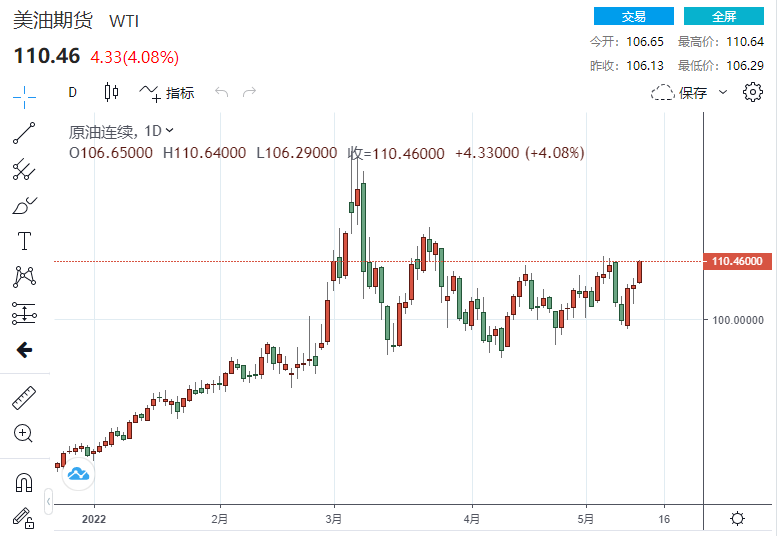截至发稿,美国WTI原油期货上行3.72美元,涨幅3.48%,现报110.42美元/桶;布伦特原油期货上探3.69美元,涨幅3.42%,报111.54美元/桶。这是WTI原油自3月25日以来的最高收盘价,也是连续第三周上涨。布伦特原油三周来首次下跌。