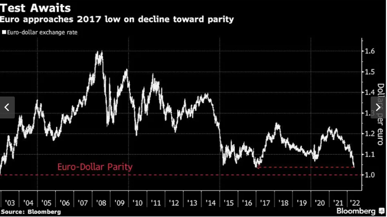 汇丰控股、加拿大皇家银行资本市场和摩根大通的策略师都认为,由于俄罗斯入侵乌克兰导致欧洲大陆增长前景恶化,欧元/美元将至少试探平价。相比之下,美联储的鹰派立场以及全球衰退风险带来的避险资金推动美元走强。