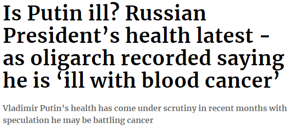 FX168财经报社(北美)讯 据报道,一名与俄罗斯总统普京关系密切的寡头称,普京“得了血癌,病得很重”。