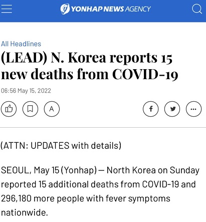 朝鲜5月12日曾报道新增发烧病例1.8万例,5月13日新增发烧病例17.44万例。有鉴于此,疫情正在迅速扩散。