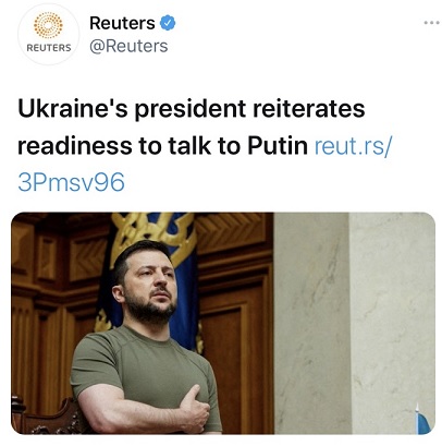 FX168财经报社(香港)讯 乌克兰总统泽连斯基(Volodymyr Zelenskiy)再次提议与俄罗斯总统普京(Vladimir Putin)举行直接会谈,泽连斯基并表示,俄罗斯从乌克兰撤军应该是任何讨论的起点。