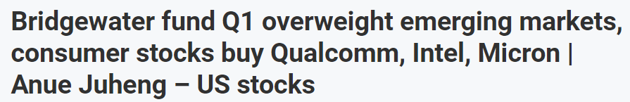 FX168财经报社(香港)讯 全球最大避险基金桥水基金今年第一季趁着市场下修之际,持续扩大新兴市场的布局,还大买高通、英特尔与美光 ,加码幅度皆超过180倍。