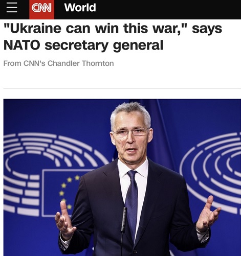 据美国有线电视新闻网(CNN)报道,斯托尔滕贝格通过视频对记者说:“俄罗斯在乌克兰的战争没有按照莫斯科的计划进行。他们没能占领基辅,他们正在从哈尔科夫周围撤退,他们在顿巴斯的主要进攻已经停止。俄罗斯没有实现其战略目标。”
