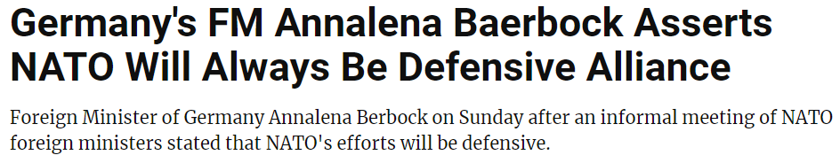 在柏林举行的北约外长会议中,德国外交部长贝尔伯克(Annalena Baerbock)表示,只要乌克兰有需要,北约将提供军事援助,以协助乌克兰进行自卫。北约秘书长史托腾柏格(Jens Stoltenberg)补充说:“乌克兰能够赢得这场战争,乌克兰人正勇敢保卫自己的家园。”