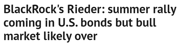 FX168财经报社(香港)讯 贝莱德全球固定收益部投资长里德(Rick Rieder)受访时表示,每位客户都说美国经济过热。随着美联储缩减其近9万亿美元的资产负债表,美国股票和债券的抛售可能会在夏季结束。美国10年期国债收益率今年至少90%的变动可能已经发生,在挑战3.25至3.5%后将开始回档。