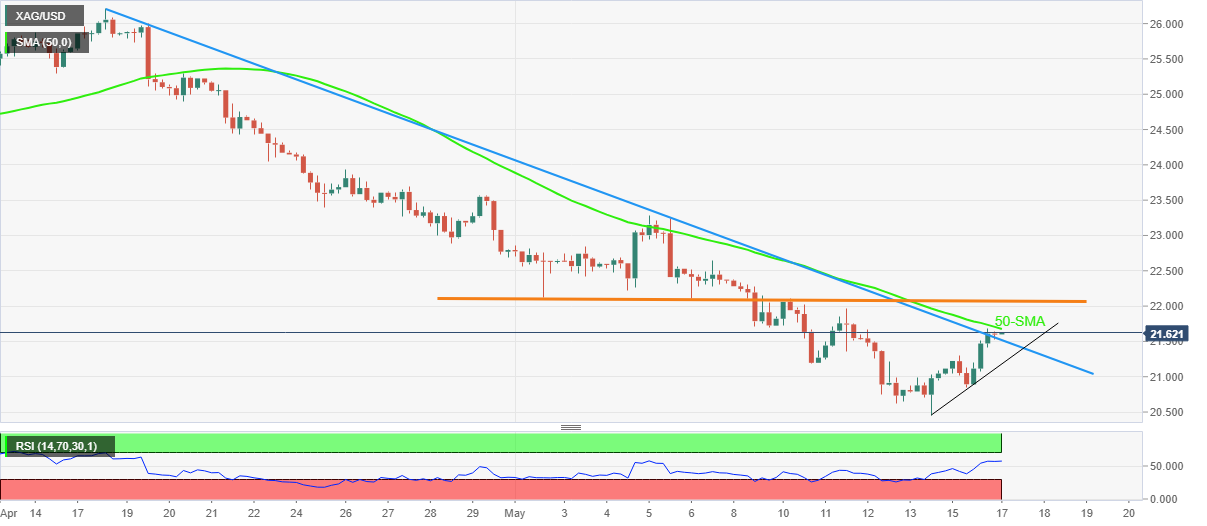 24K99讯 周二(5月17日)亚市盘中,现货白银保持坚挺,现报21.60美元/盎司附近。知名财经网站FXStreet分析师Anil Panchal周二最新撰文,对银价技术前景进行分析。