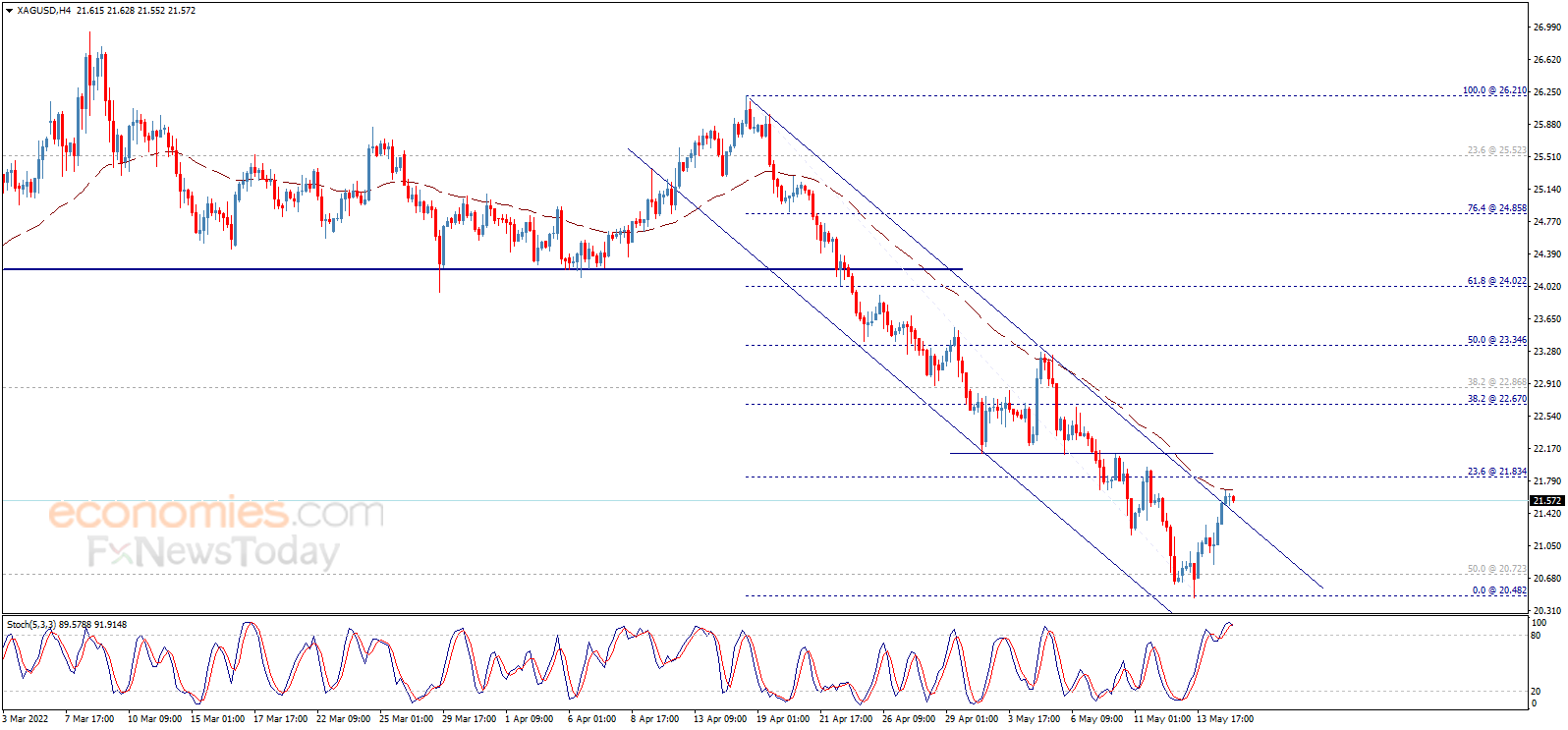Economies.com预计,今日银价交投将位于支撑位21.20美元/盎司以及阻力位22.00美元/盎司之间。