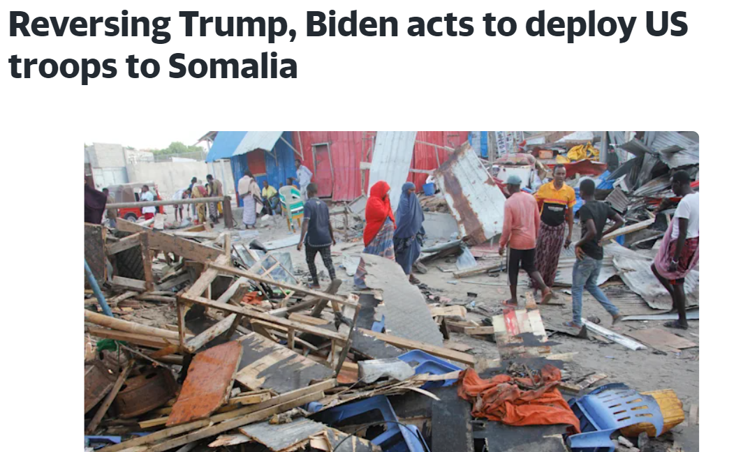 据美国国家安全委员会发言人艾德丽安·沃森(Adrienne Watson)宣布,他们将重新展开当地的军事部署。一位不愿透露姓名的拜登政府高级官员向记者简要介绍了这一决定,他说,驻索马里的美军总人数将“低于500人”。
