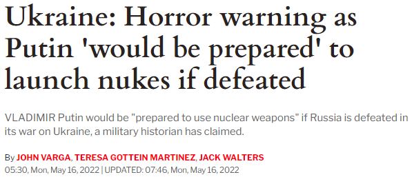 他认为,如果“自己的政权”在乌克兰被击败,这位前克格勃(KGB)情报官员准备使用核武器。