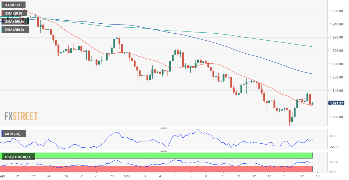 24K99讯 周三(5月18日)亚市盘中,现货黄金延续跌势,目前交投在1812美元/盎司附近。FXStreet首席分析师分析师Valeria Bednarik最新撰文,对金价走势进行分析。Bednarik指出,金价在关键阻力位附近遇到卖家,且仍有延续跌势的空间。