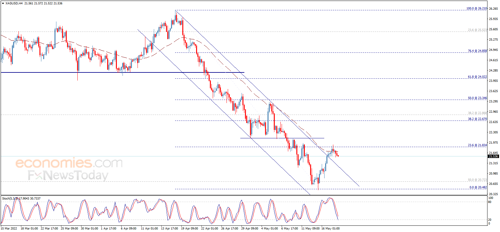 24K99讯 周三(5月18日)亚市尾盘,现货白银维持跌势,银价目前位于21.60美元/盎司下方。知名财经资讯网站Economies.com周三最新撰文,对日内白银走势进行前瞻分析。