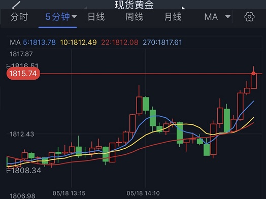 FX168财经报社(香港)讯 周三(5月18日)欧市早盘,美元指数维持升势,现报103.60附近;现货黄金短线突然快速上涨,金价刚刚突破1815美元/盎司,日内转为上涨。知名财经资讯网站Economies.com周三最新撰文,对日内欧元/美元、英镑/美元、美元/日元、澳元/美元和黄金走势进行前瞻分析。