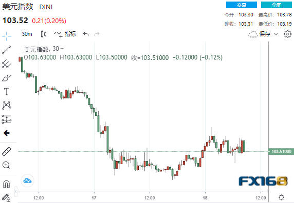 美元指数现上涨0.2%,交投于103.50一线,周二一度触及两周低点。