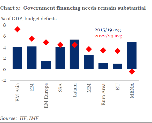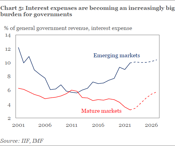 同期,政府债务增长放缓,但随着借贷成本上升,主权资产负债表仍面临压力。
