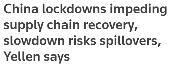FX168财经报社(北美)讯 周三(5月18日),美国财政部长耶伦表示:“中国因新冠肺炎疫情而采取的封锁措施,似乎阻碍了商品流通和全球供应链,中国经济增长的全面放缓可能会对全球产生溢出效应,值得密切关注。”