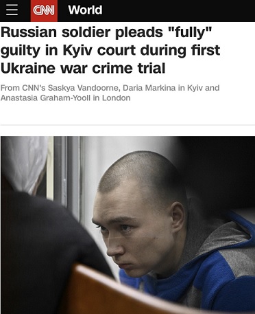 周三,21岁的瓦迪姆·希什马林“完全”认罪,他最高将面临无期徒刑。希希马林在基辅法庭上承认,战争初期他在乌克兰苏梅(Sumy)地区,枪杀了一名无武装的62岁乌克兰平民。