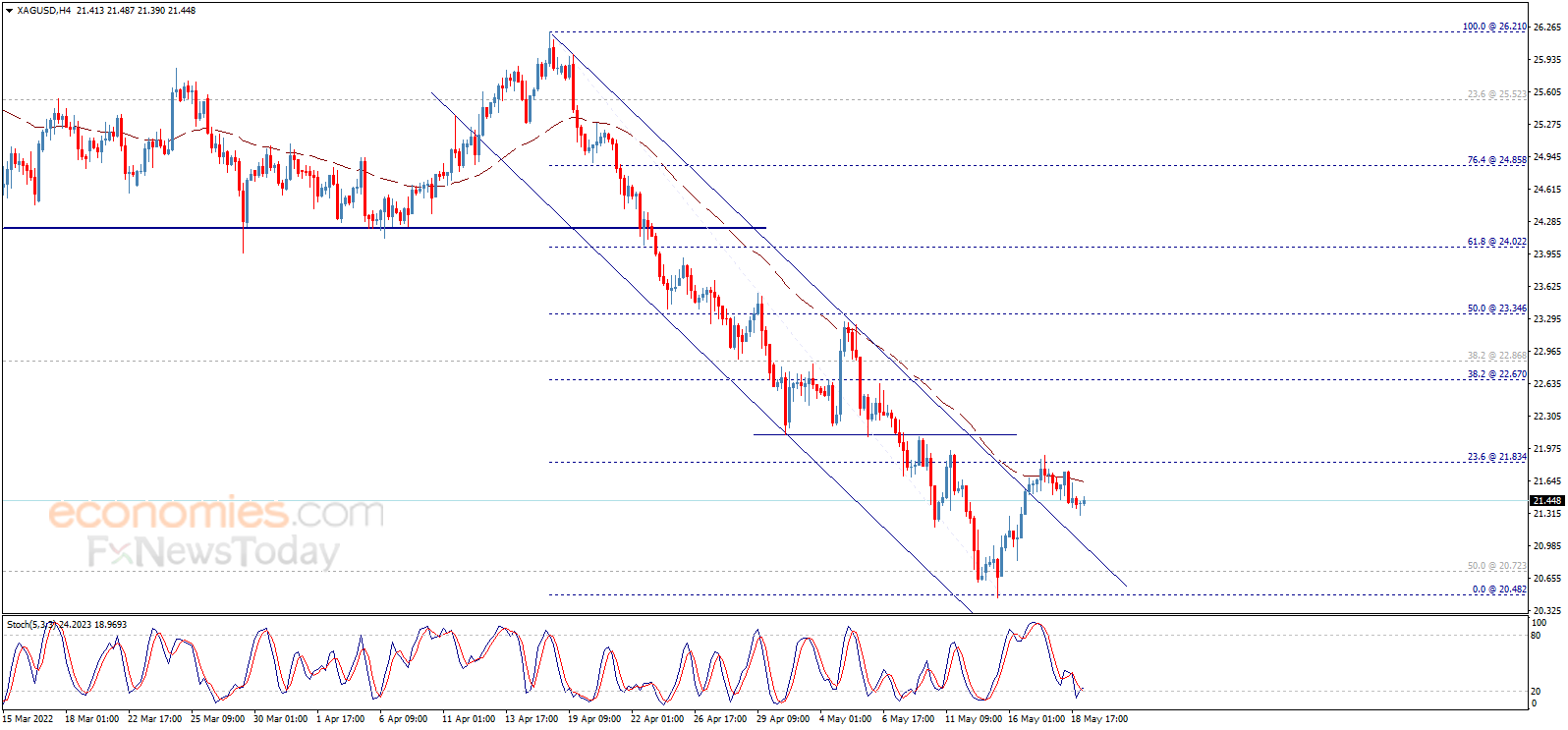 根据Economies.com,假如银价跌破首个看空目标21.00美元/盎司,后市恐进一步大跌。