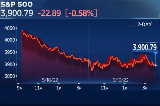 美股周四延续跌势。标普500指数进一步逼近熊市。市场仍在评估多家零售商令人失望的财报、美国通胀形势及美联储的激进紧缩政策立场。道指周四跌236.94点,跌幅为0.75%,报31253.13点;纳指跌29.66点,跌幅为0.26%,报11388.50点;标普500指数跌22.89点,跌幅为0.58%,报3900.79点。