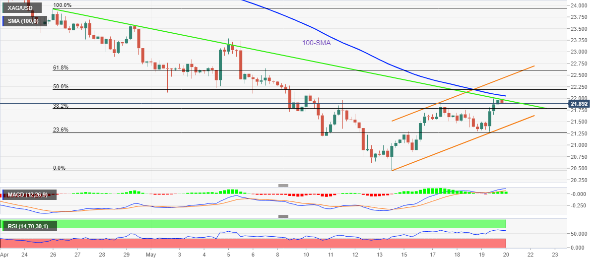 24K99讯 周五(5月20日)亚市盘中,现货白银基本持稳,银价现报21.90美元/盎司附近。知名财经网站FXStreet分析师Anil Panchal周五最新撰文,对银价技术前景进行分析。Panchal指出,目前多头目标攻克短期重要阻力22.00美元/盎司,以实现进一步大涨。