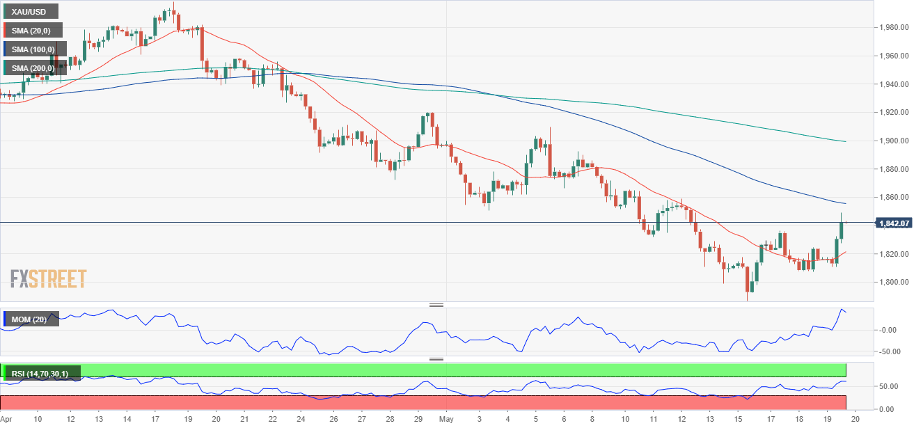 24K99讯 周五(5月20日)亚市盘中,现货黄金温和回落,金价现报1837美元/盎司附近,昨日金价大涨超过25美元。FXStreet首席分析师分析师Valeria Bednarik最新撰文,对金价走势进行分析。Bednarik指出,美元遭到抛售,这支撑了黄金。黄金短期技术面前景看涨,短期阻力位在1856.35美元/盎司。