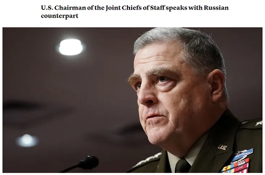 FX168财经报社(香港)讯 五角大楼当地时间周四(5月19日)证实,当日美军参谋长联席会议主席米利(Mark Milley)与俄罗斯总参谋长格拉西莫夫(Valery Gerasimov)通过电话进行了交谈。这是自今年2月俄乌战争爆发以来,两人首次通话。