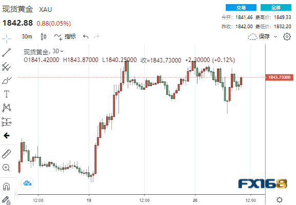 美市早盘,现货金自高位迅速下滑14美元,刷新日低至1832.20美元,但随后反弹至1840上方。截至撰稿,黄金价格本周上涨约1.6%。