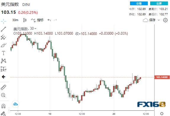 但在过去14周中上涨了12周后,美元指数本周有望下跌1.6%。日内,美元小幅上涨至103.21,较日低拉升超40点。