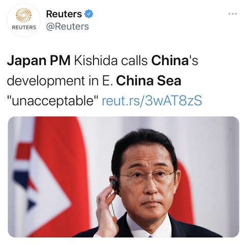 FX168财经报社(香港)讯 日本首相岸田文雄(Fumio Kishida)当地时间上周六(5月21日)表示,他对中国开发东海地区的努力感到失望,称这是“不可接受的”。