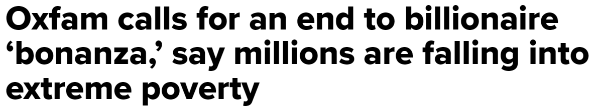 瑞士达沃斯世界经济论坛峰会(World Economic Forum Summit)的第一天,乐施会就提到,到2022年3月,世界上的亿万富翁人数比大流行开始时的2020年多573人。乐施会说,这相当于每30小时就有一位新的亿万富翁。