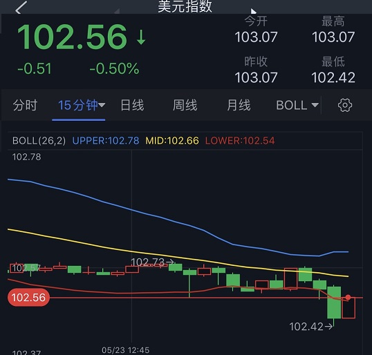 (美元指数15分钟图 来源:FX168)