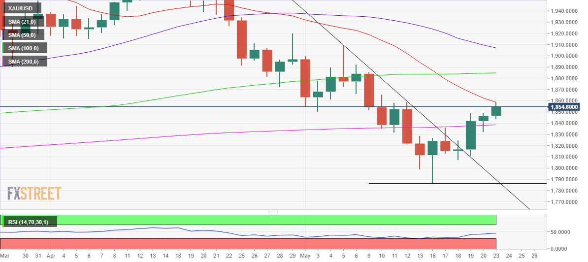 (现货黄金日线图 来源:FXStreet)