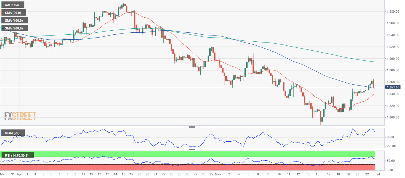 24K99讯 周二(5月24日)亚市盘中,现货黄金短线走低,金价刚刚跌破1850美元/盎司关口。FXStreet首席分析师分析师Valeria Bednarik最新撰文,对金价走势进行分析。Bednarik指出,若跌破短期支撑位1849.20美元/盎司,金价存在进一步下跌的空间。