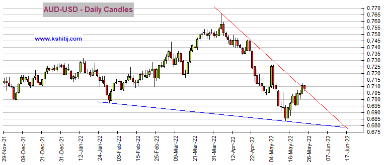 澳元/美元在上行测试0.7127后下跌。修正性跌势可能会延伸至0.7050-0.70,然后在中期内再次试图回升向0.7150或更高水平。