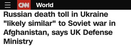 英国防部:俄军死亡人数已与阿富汗战争相当