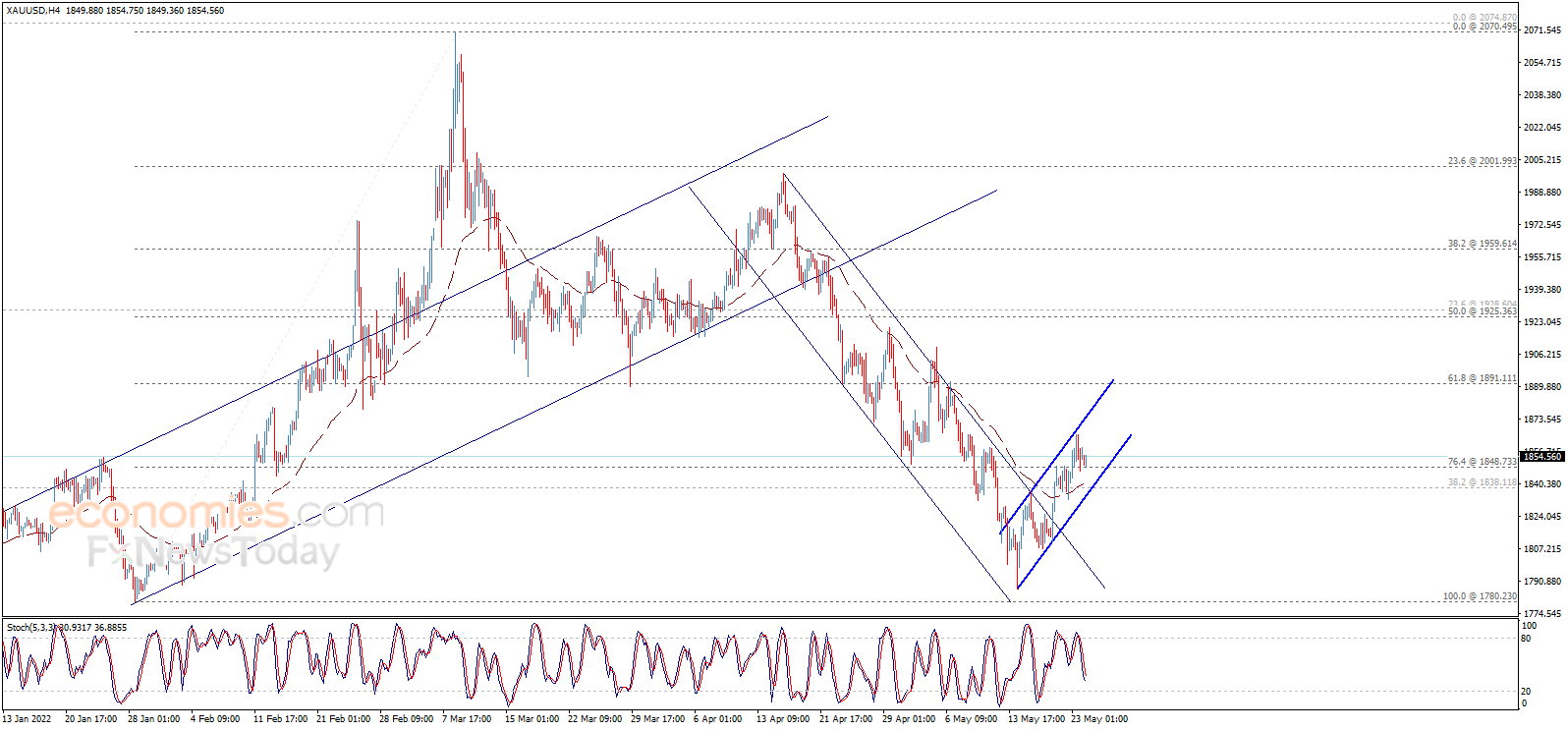 (现货黄金4小时图 来源:Economies.com)