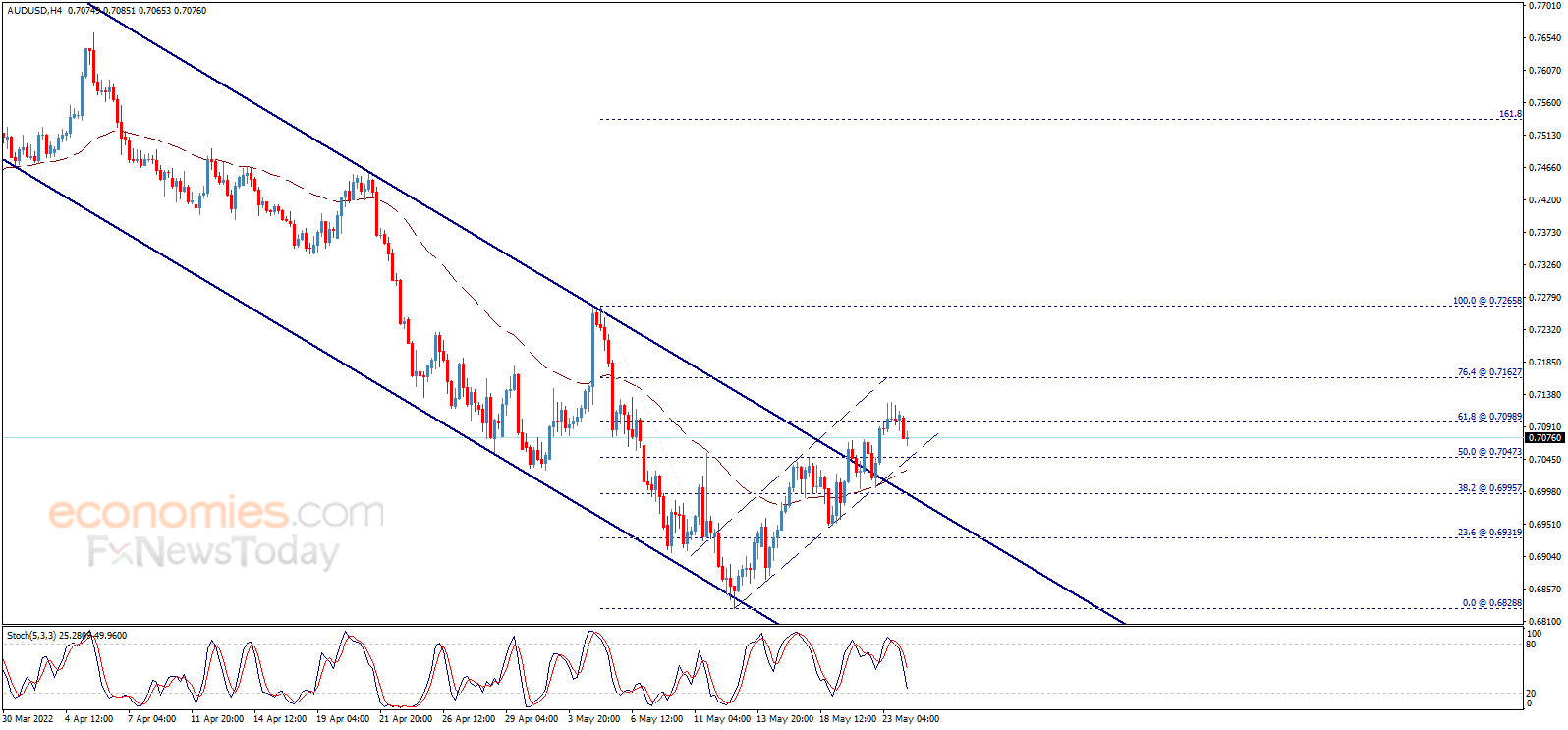 澳元/美元显现一些看空倾向,并接近看涨通道支撑线,从4小时图来看,EMA 50指标继续形成正面支撑。等待澳元/美元继续看涨走势,下一目标位于0.7165。