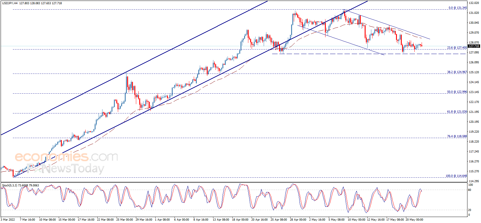 预计今日美元/日元交投将位于支撑位127.00以及阻力位128.20之间。