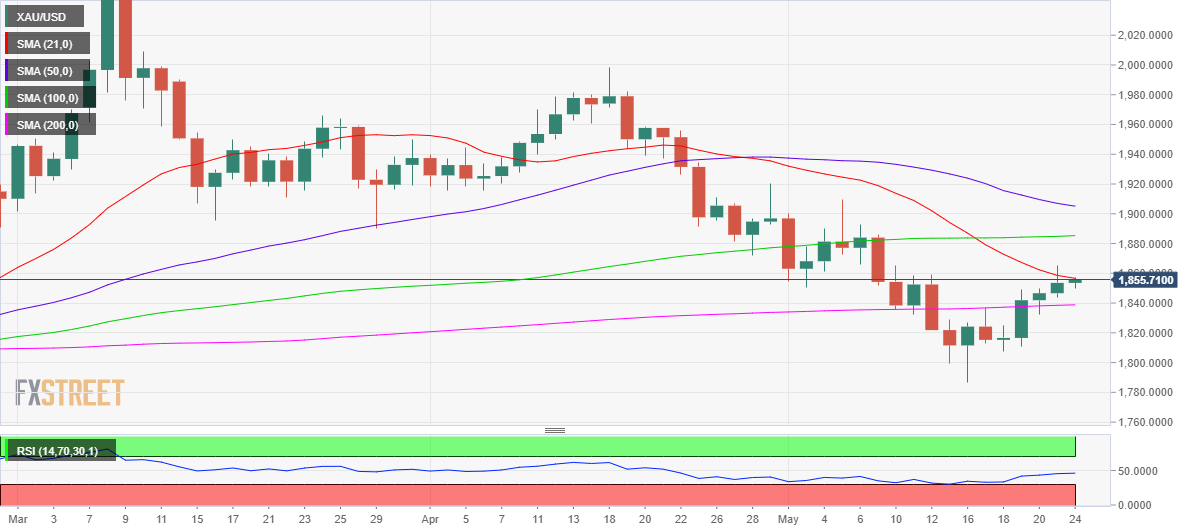 24K99讯 周二(5月24日)欧市早盘,现货黄金维持升势,目前金价交投在1856美元/盎司附近。知名财经网站FXStreet分析师Dhwani Mehta周二最新撰文,对金价技术前景进行分析。
