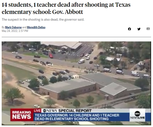 据ABC新闻报道,得州州长格雷格·阿博特确认至少14名学生和1名教师死于校园枪击事件。