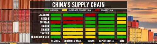 FX168财经报社(北美)讯 周二(5月24日),根据CNBC的新供应链热度图(Supply Chain Heat Map),上海港口生产率的下降,可以从港口的集装箱等待时间中看出,这是由于疫情封锁导致工作人员不足。