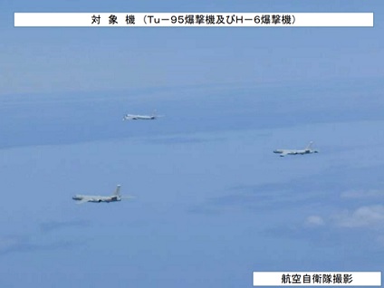 据日本防卫省称,中国的2架从东海北上日本海,与俄罗斯的2架汇合后,4架一同向东海移动。此外,中方飞机与可能是同类型的另2架交替后,与上述俄方2架一同从东海南下至太平洋。在日本海沿着绕岛根县竹岛(韩国称独岛)一周的路线飞行,进入太平洋之际从冲绳本岛和宫古岛之间通过,没有侵犯领空。