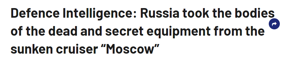 然而,乌克兰独立新闻社(UNIAN)提到,俄罗斯过去两周一直在从莫斯科号的残骸中取回船员尸体和机密文件。该机构引述乌克兰国防情报局官员史基毕特斯基(Vadym Skibitsky)告诉克里米亚广播电台的内容称,俄罗斯已派遣5至7艘船隻至莫斯科号沉没的区域。